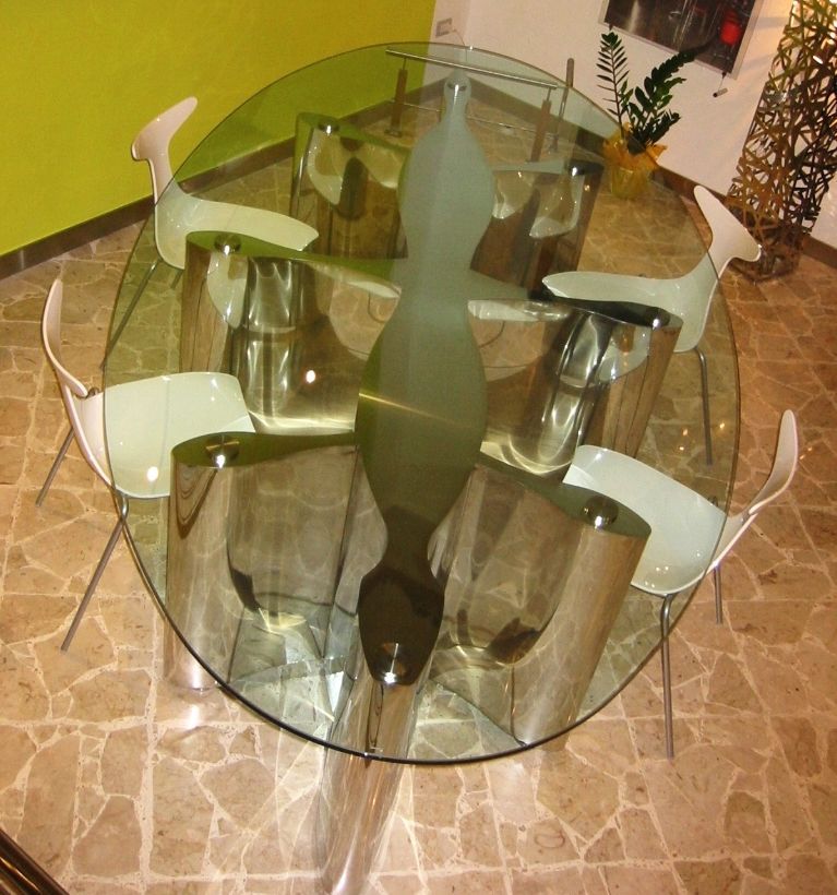 L’idea era quella di un tavolo riunioni, ove ogni occupante avesse a disposizione uno spazio proprio, rigidamente delimitato da volumi sinuosi, quasi organici. Contrapposizione tra l’organicità e la rigidezza, che si ripete tra la qualità e la forma. Materiali assolutamente brillanti o trasparenti, conferiscono eleganza a forme che sono tutt’altro che usuali per oggetti di lusso, come questo.