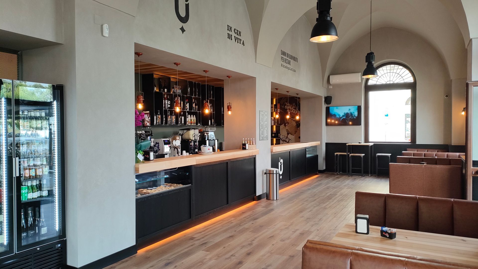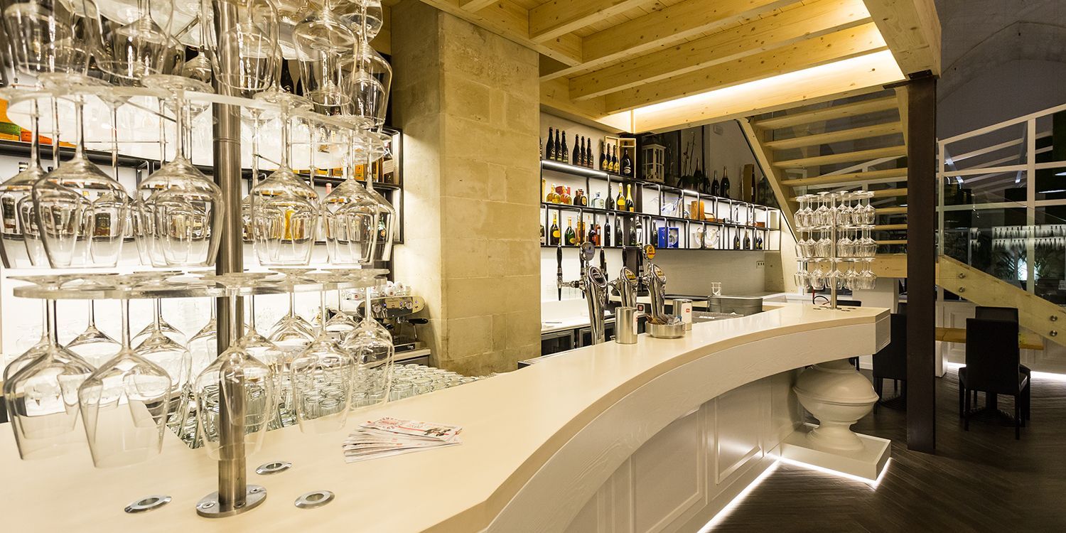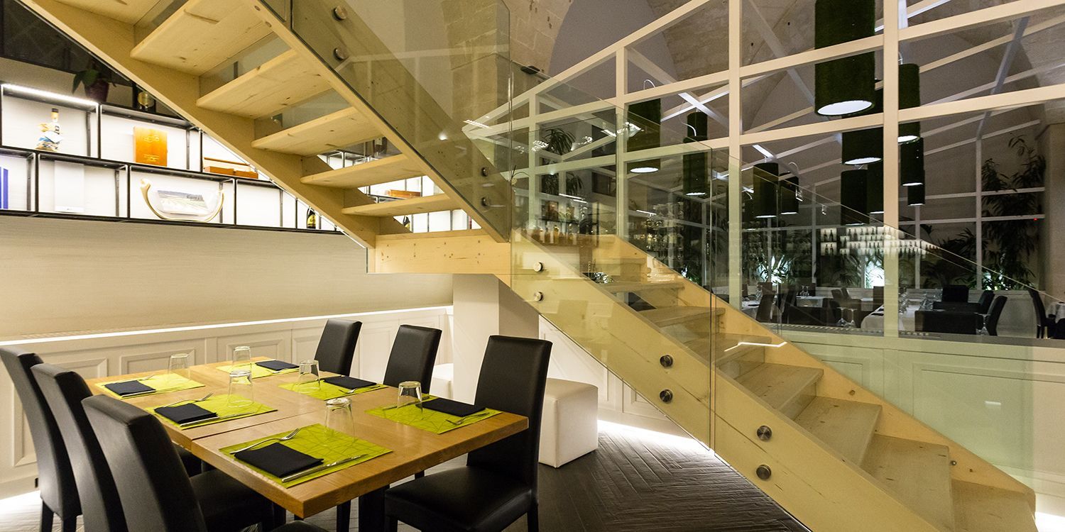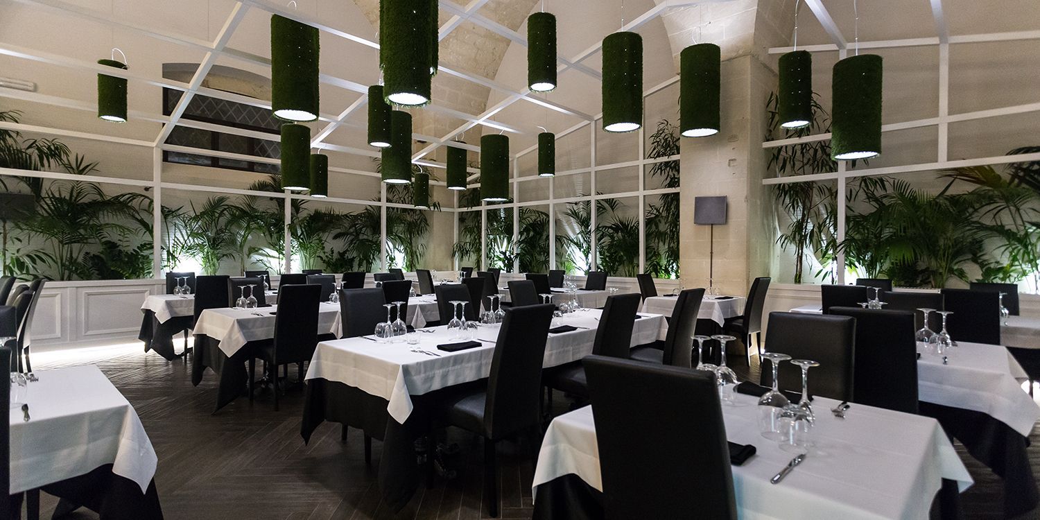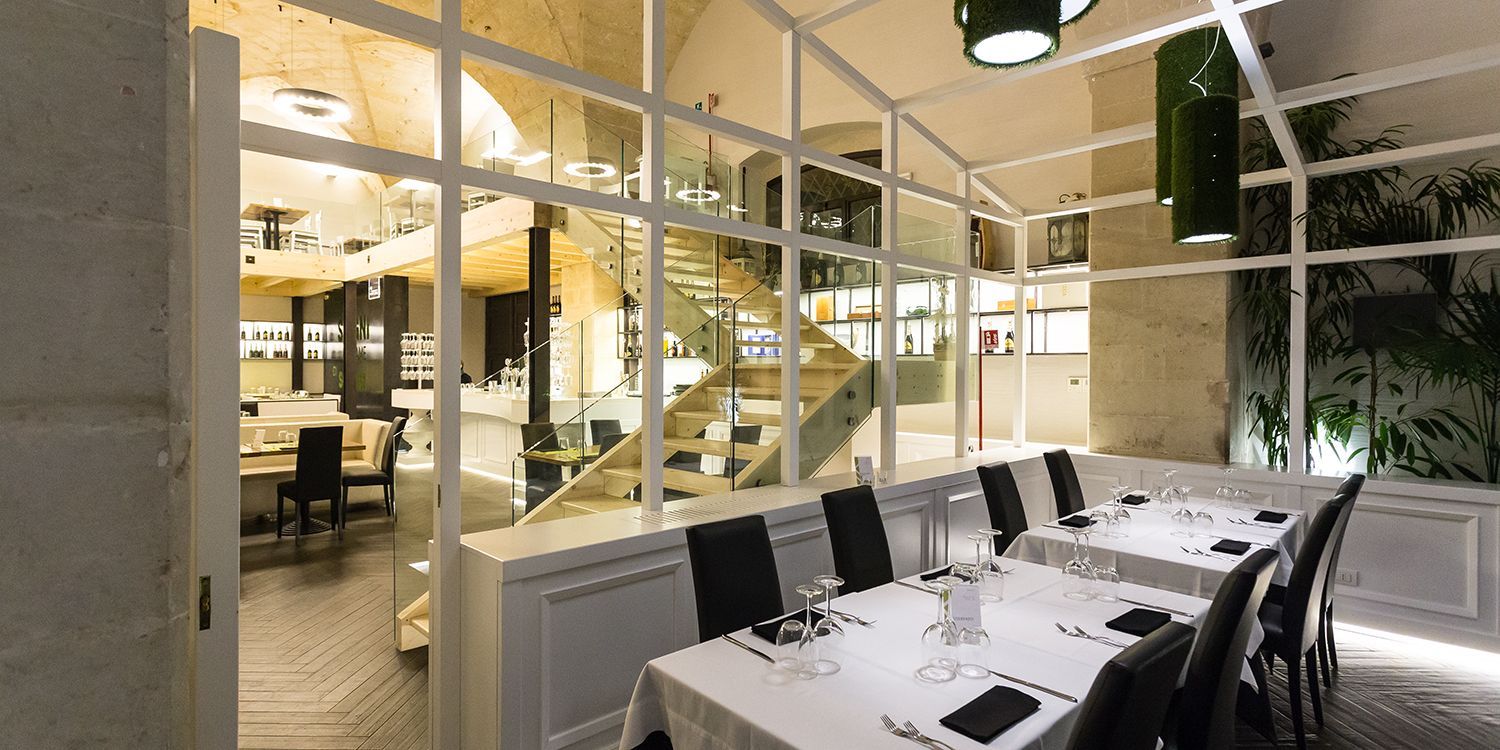 Circa 450 mq della sala interna e più di 400 mq esterni, al piano terra di un ex edificio industriale della vecchia zona artigianale di Galatina, trasformati in un ristorante dai tratti contemporanei, ma allo stesso tempo luminoso e accogliente, che combina la cucina della tradizione con un pizzico di modernità.