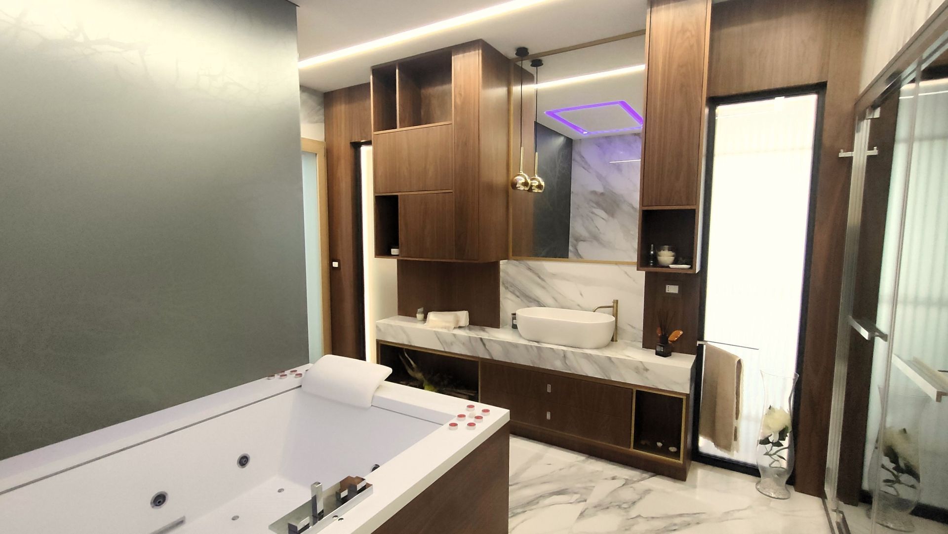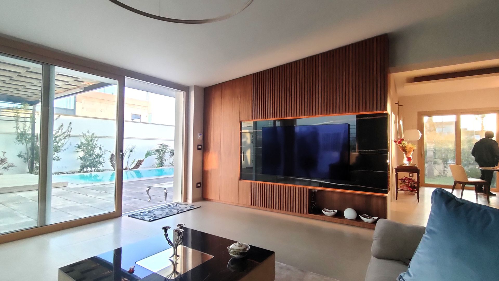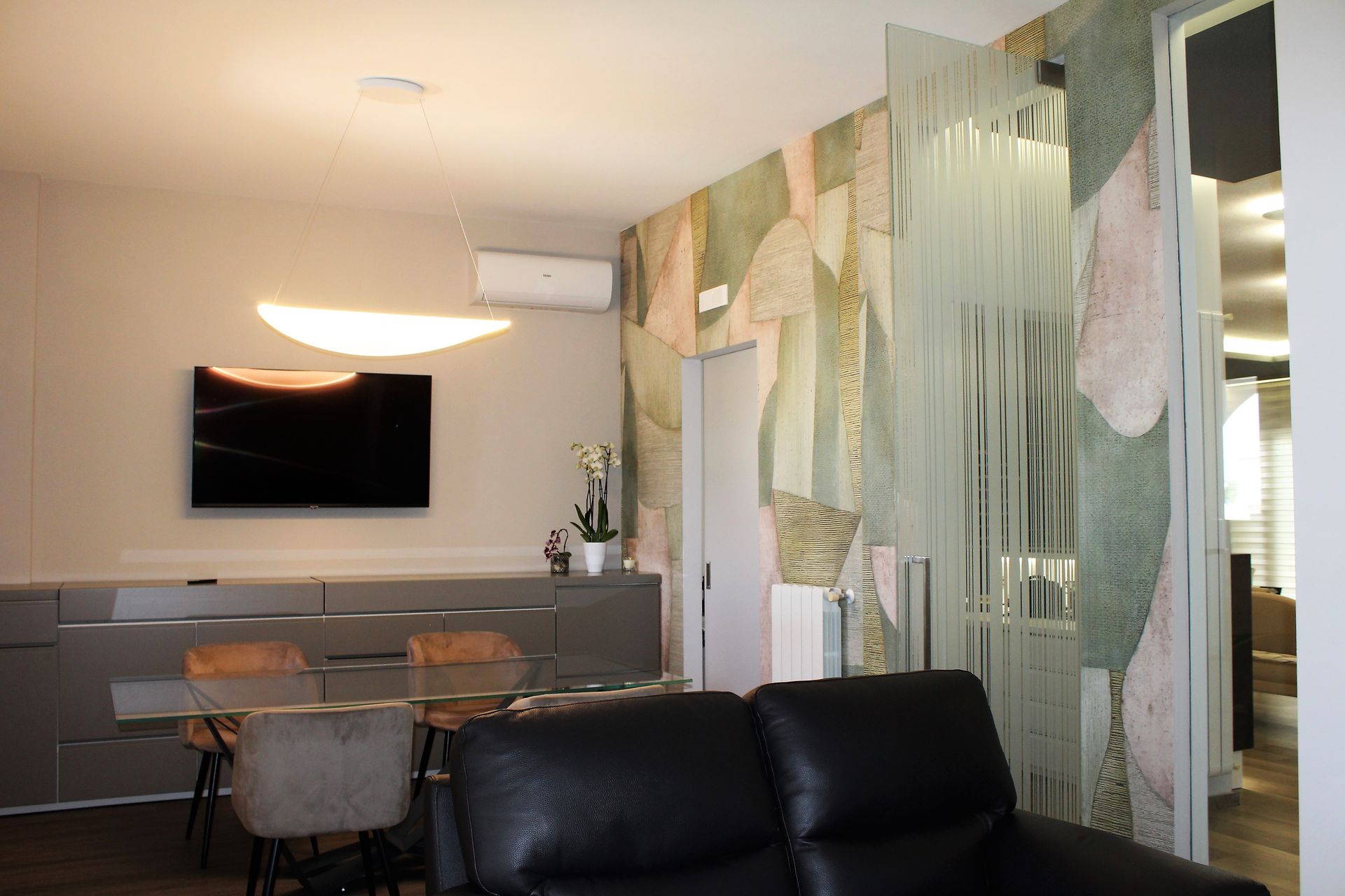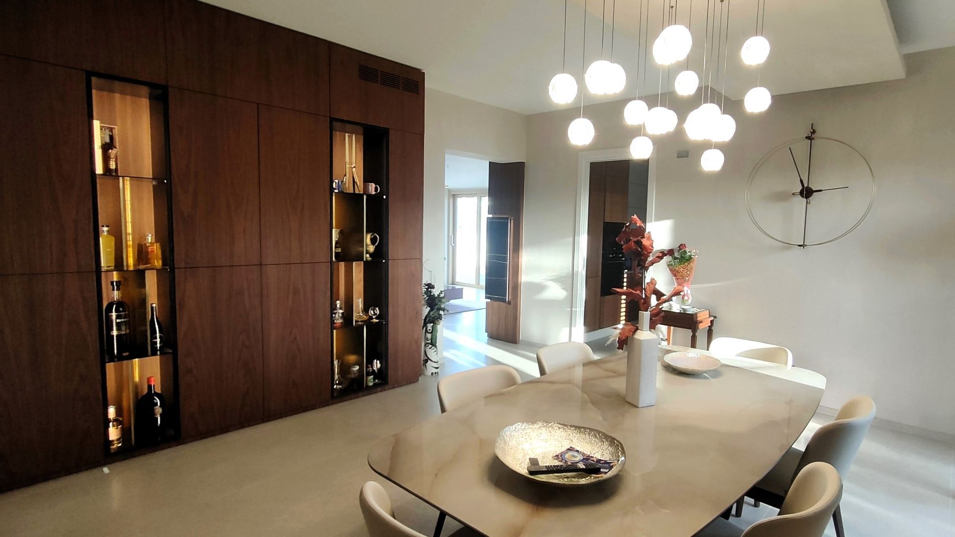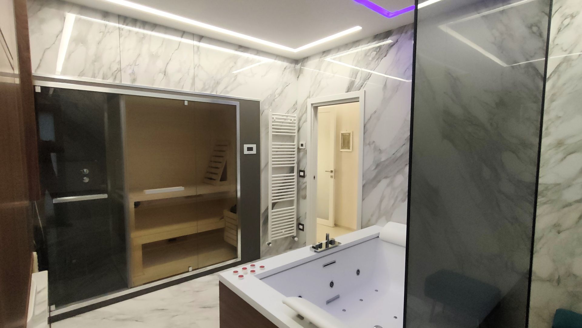 Funzionale a questo scopo risulta essere la serra, vera protagonista del progetto, in quanto oltre a rappresentare l’elemento di attrazione principale degli interni, organizza il layout in due distinte aree funzionali e spaziali. Evidente è lo spunto progettuale di ricreare un giardino in un interno, motivo per cui grande spazio è stato dato al verde, posizionato perimetralmente alla serra e illuminato in maniera suggestiva, ma anche reinterpretato come rivestimento e come complemento d’arredo.